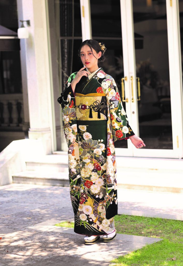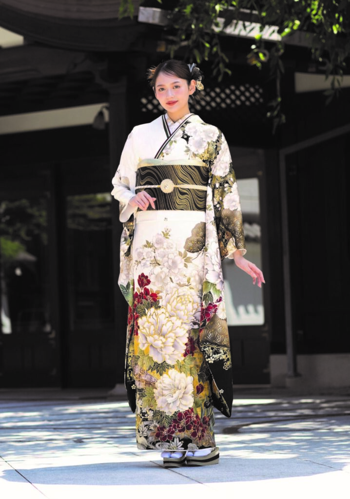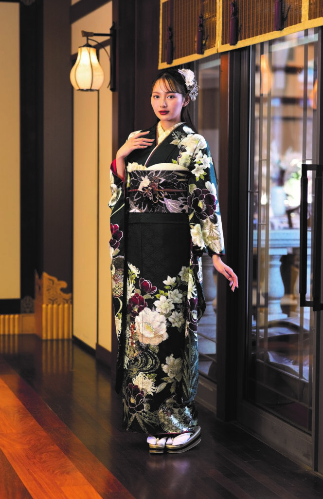 柄の華やかさも色を抑えたモノトーンで 落ち着いた印象に