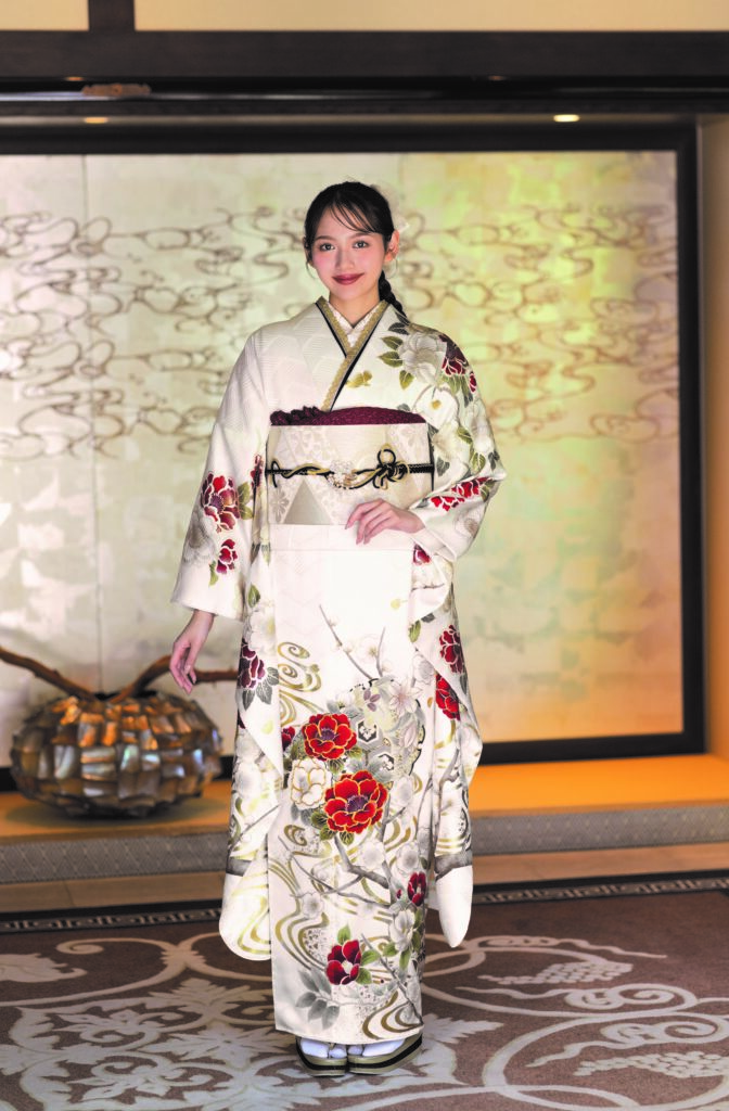 様々な文様の合わせが美しく、 上品さを引き出す。